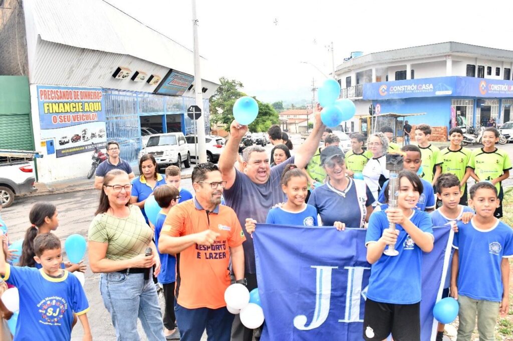 Na manhã desta sexta-feira (31), o secretário de Desporto e Lazer, Gilson Silvério de Bastos, acompanhado de secretários municipais, vereadores, diretores de escolas, alunos e convidados, realizou com um pequeno grupo de alunos uma caminhada simbólica com a tocha olímpica pelas avenidas Getúlio Vargas e Brasil, no centro da cidade.