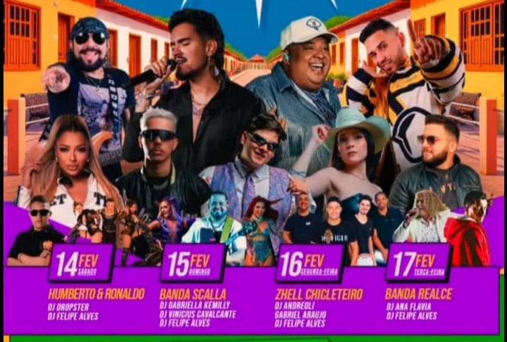 Serão quatro noites de festa e duas matinês, com shows de atrações nacionais, regionais e artistas locais. A abertura oficial, no sábado (14), ficará por conta da dupla sertaneja Humberto & Ronaldo, artistas de destaque nacional.