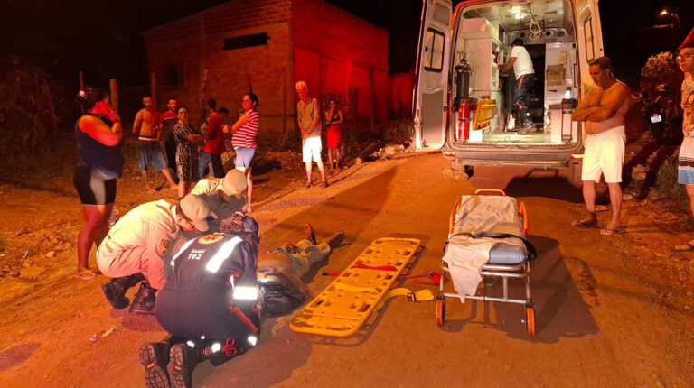 No momento do socorro, a vítima estava consciente, mas confusa. Durante o atendimento, ela sofreu uma parada cardíaca. NiqNews/Gilmar Alves