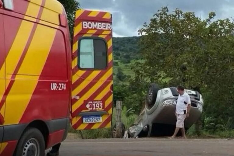 Dez estudantes estavam em uma Kombi que capotou após bater em um Polo, só o motorista do Polo ficou ferido.
