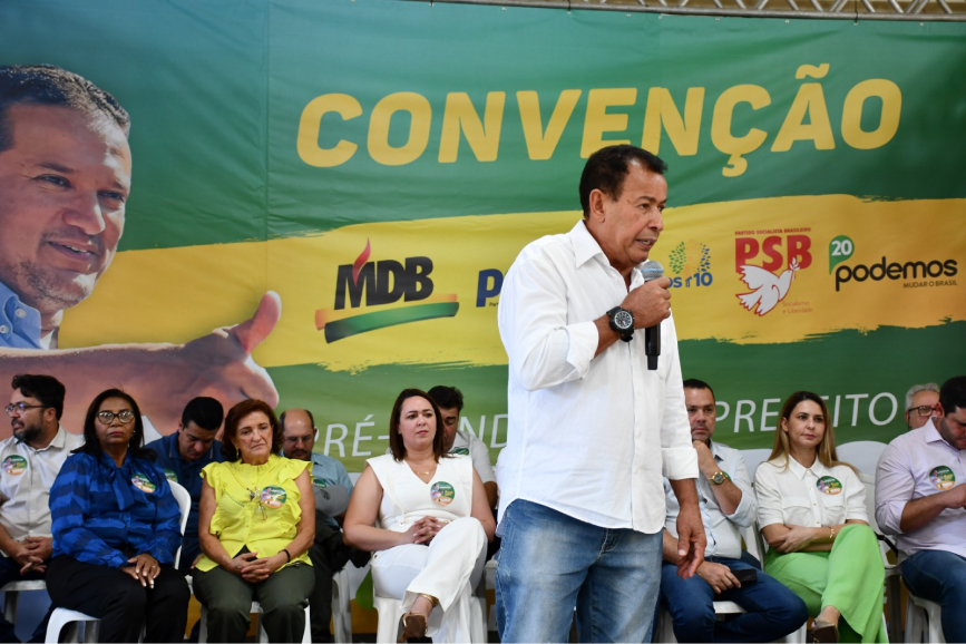 O Movimento Democrático Brasileiro (MDB) realizou na manhã deste sábado, dia 03 de agosto, sua convenção no Village Eventos, que contou com a presença de um grande público dentro e fora do salão. O partido disponibilizou um sistema de som externo para atender o público, uma vez que o salão estava lotado. Programada para as 09:00, a convenção teve sua abertura oficial às 09:30 e foi suspensa até a chegada do pré-candidato Dr. Sandro, por volta das 11:00.