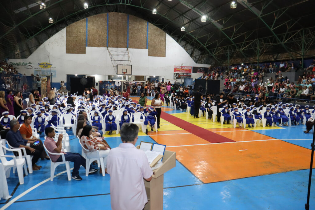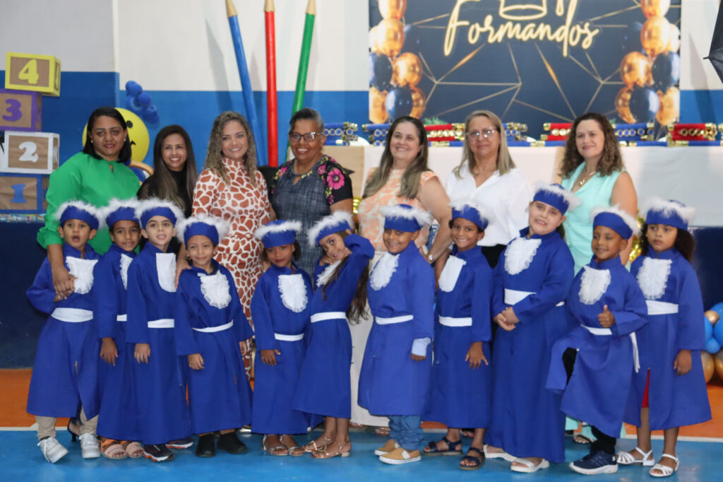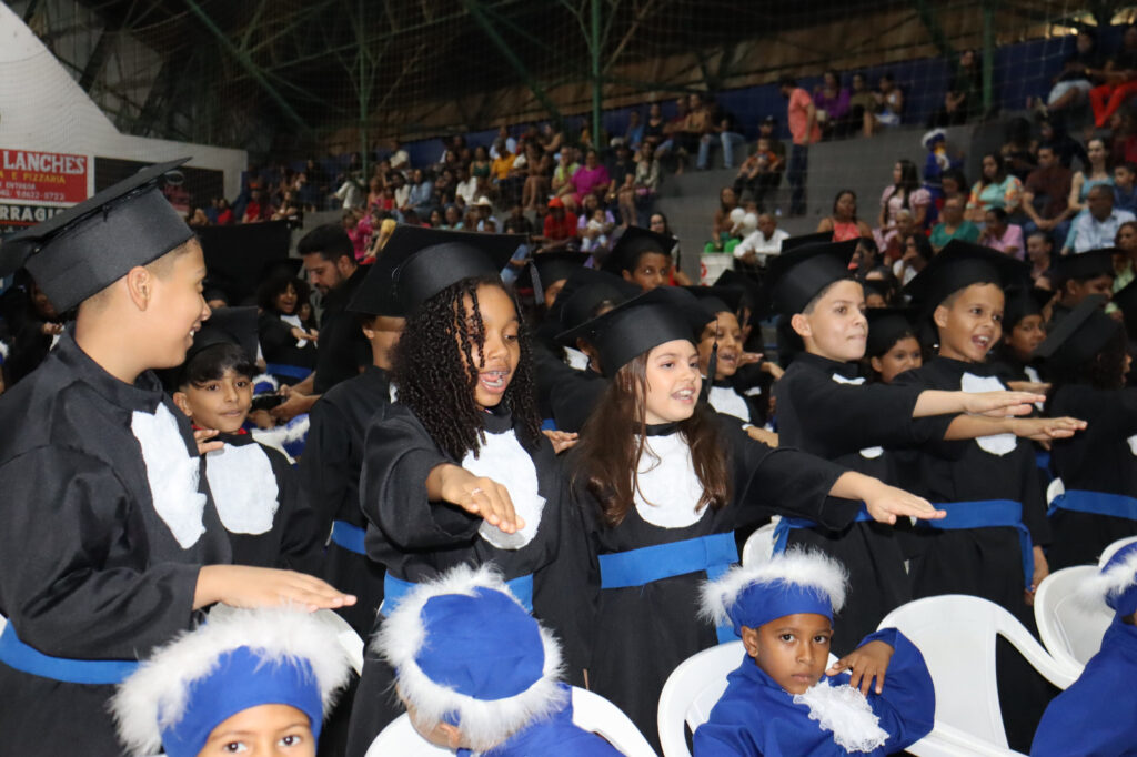 “É uma alegria muito grande pra gente estar realizando essa formatura. Finalizamos o processo que começou na quarta-feira, quando formamos 251 crianças; na quinta, mais 251 alunos; e hoje, 114 crianças estão se formando. São estudantes do Jardim II e do 5º ano, incluindo os alunos da Escola Juscelino Kubitschek de Oliveira.”