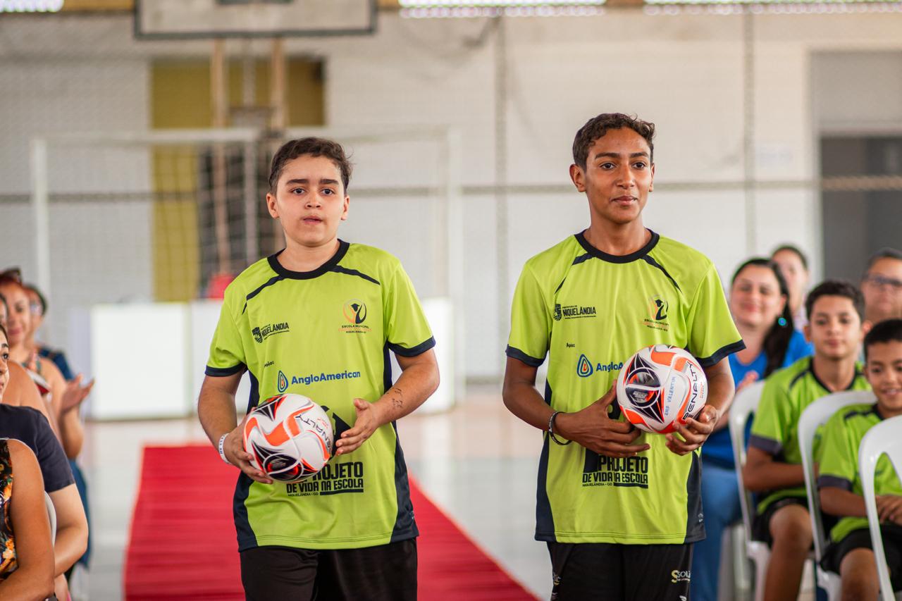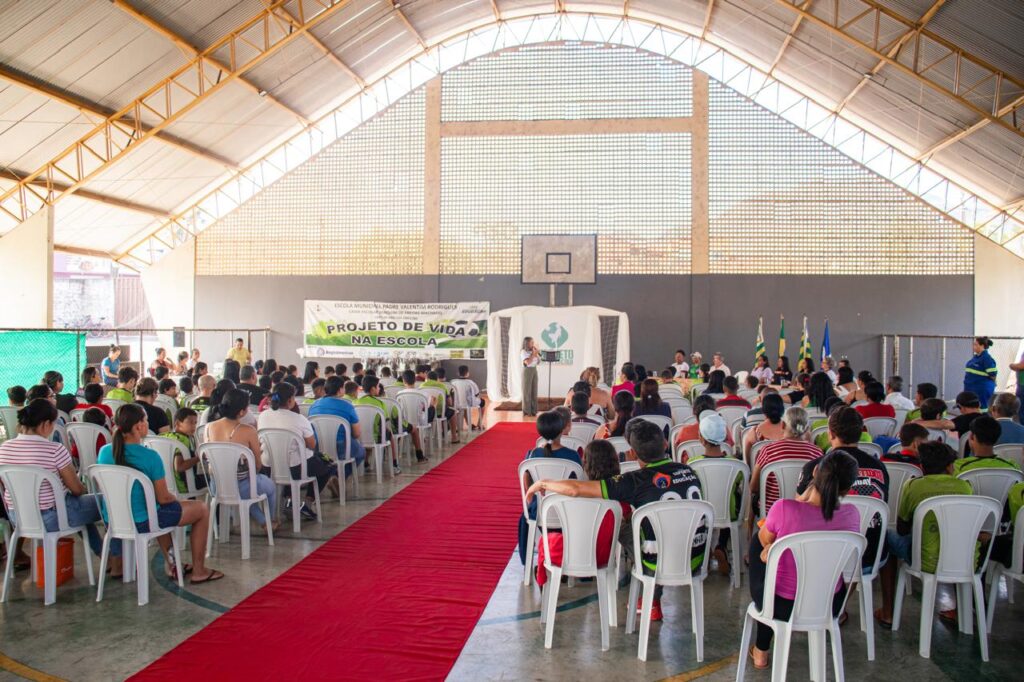 O Projeto de Vida na Escola, desenvolvido na Escola Padre Valentim Rodrigues, no setor Jardim Atlântico, ganhou ainda mais brilho no último dia 30 de setembro, com a entrega dos kits esportivos – camiseta, chuteira, sacochila e squeeze – aos jovens atletas participantes da iniciativa.