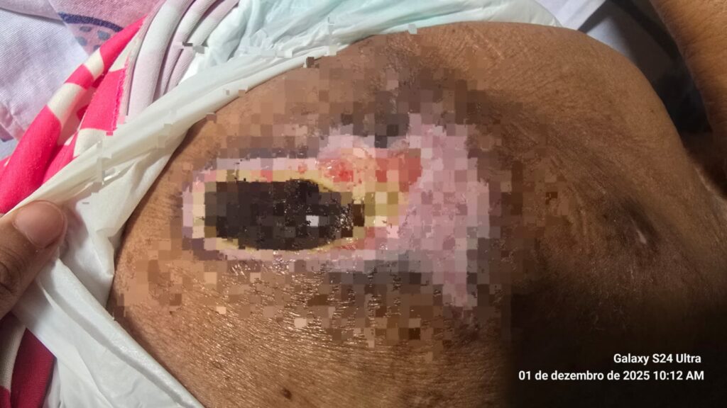 “Encontramos uma idosa de 84 anos com ferimentos profundos, sentindo muita dor. Mesmo com orientação da equipe de saúde, a filha se recusou a levá-la ao hospital. Diante da gravidade da situação, acionamos o Corpo de Bombeiros para garantir o atendimento urgente.”