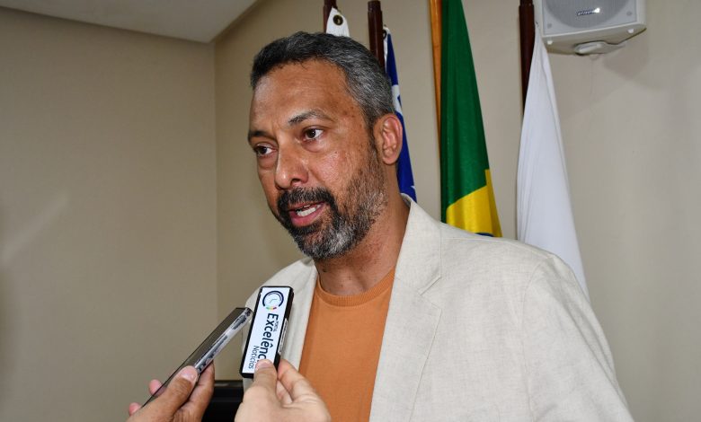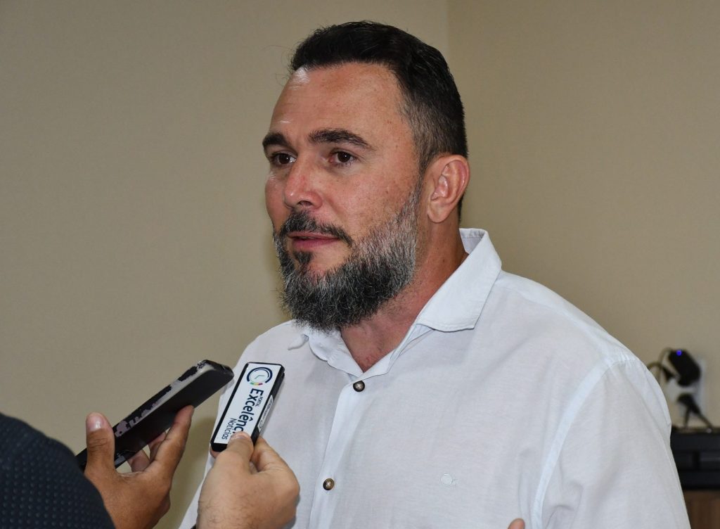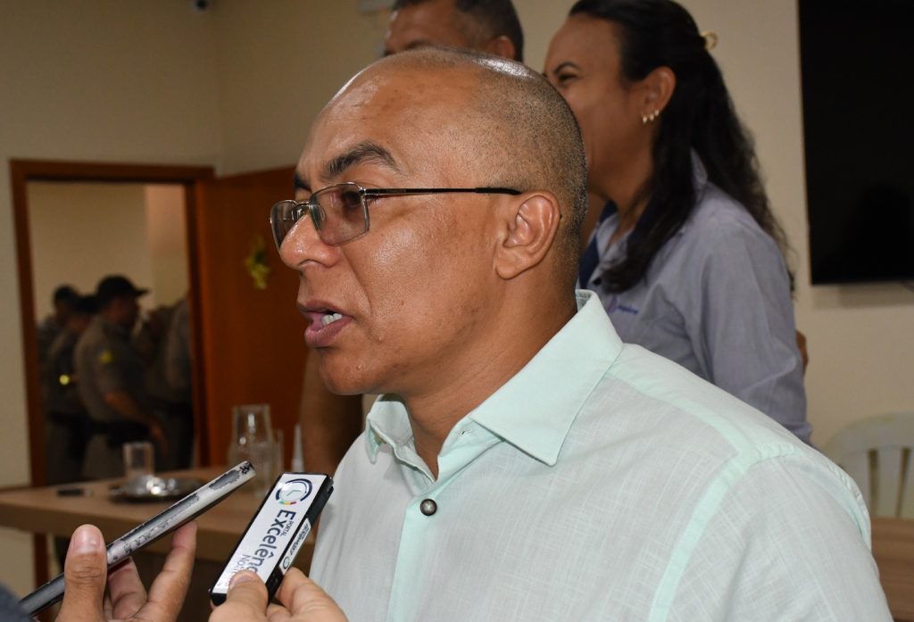 Eduardo Moreira, prefeito de Niquelândia, durante entrevista ao final da cerimônia de posse do Conseg local: chefe do Executivo pretende investir em câmeras de monitoramento com recursos de inteligência artificial. Foto: Patricia Bastos