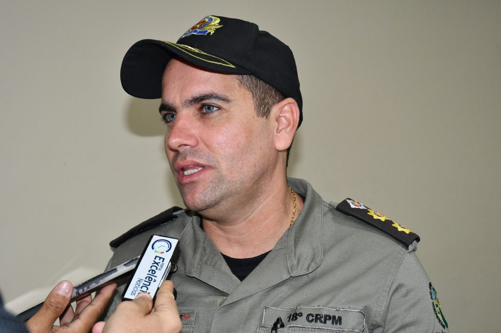 Tenente-coronel Sandro Rezende, subcomandante do 18º CRPM em Uruaçu, durante entrevista: oficial de alta patente da PM representou o governador Ronaldo Caiado na posse do Conseg em Niquelândia. Foto: Patricia Bastos