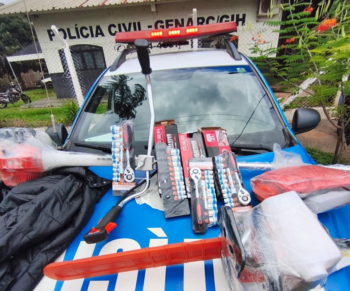 O automóvel era conduzido por uma mulher que possui antecedentes criminais pelo artigo 171 do Código Penal (estelionato). Durante a busca veicular, os policiais localizaram diversos produtos novos sem nota fiscal, entre eles jogos de soquetes, uma roçadeira da marca STIHL e peças de vestuário, que estavam sendo comercializados por valores abaixo do preço de mercado.